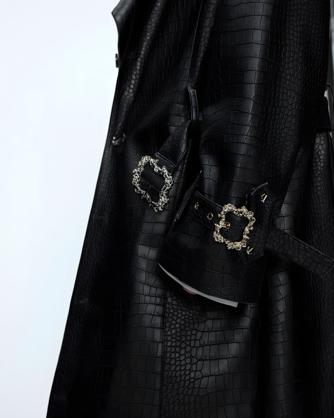 Be the first to review “long black leather or faux-leather trench coat”